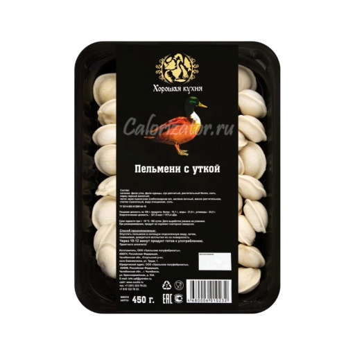 Пищевая ценность пельменей с уткой Хорошая кухня